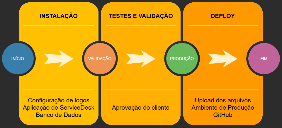 O objetivo é otimizar a gestão de serviços e melhorar a experiência do usuário final. Após a implantação, o sistema passa por um monitoramento contínuo para garantir seu bom funcionamento.