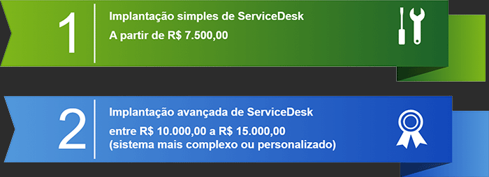 Preço fixo por implantação: O valor para implantar um sistema de ServiceDesk também pode variar dependendo da complexidade da personalização e do número de módulos necessários. Para um sistema básico de ServiceDesk, A partir de R$ 7.500,00 (para sistemas simples). Se for necessário um sistema mais complexo ou personalizado, entre R$ 10.000,00 a R$ 15.000,00.